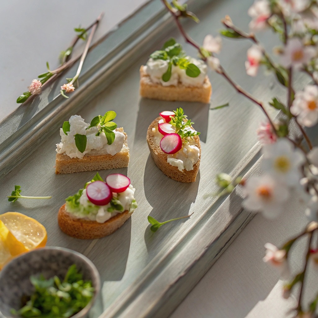 Начните свой праздник с фингер-сэндвичей с творожным кремом и укропом. Эти легкие закуски, состоящие из свежего белого хлеба без корок, наполнены нежным кремом из творога и сливок, дополненным свежим укропом и лимонным соком. Такой вариант станет отличным сопровождением к вашему чаю. Этот рецепт подразумевает следующие шаги: