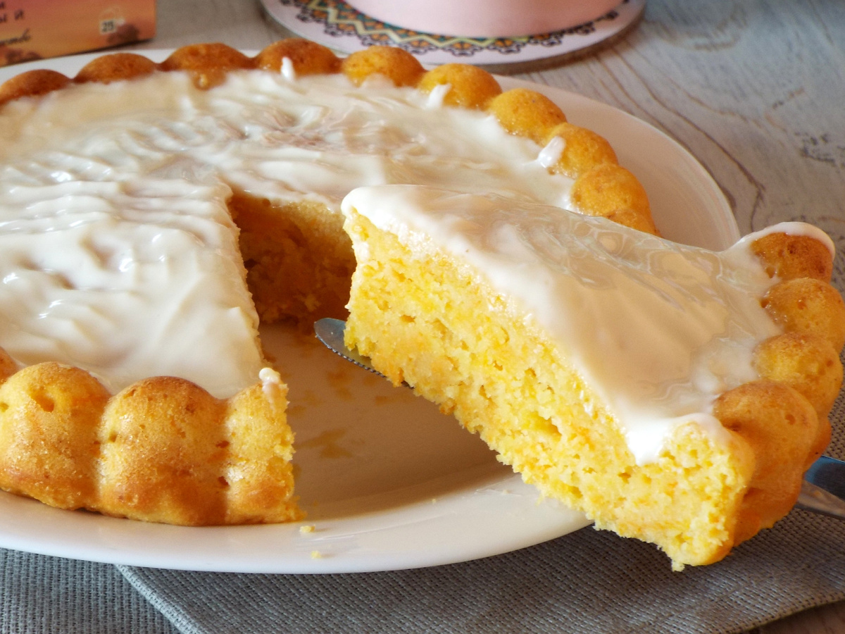 Когда пирог остыл, можно заняться кремом: смешиваем 3 ст.л. сметаны (20%) с 1 ст.л. сахара. По желанию добавляем немного ванили или лимонной цедры. Наносим крем на остывший пирог ровным тонким слоем. Для удовольствия можно посыпать сверху орехами или натертой морковью для украшения. Даже без этих деталей пирог будет отличным угощением.