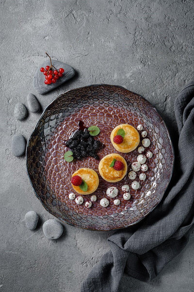 9. Вытяните сырники из духовки, сервируйте на тарелке с ложкой сметаны и вареньем.