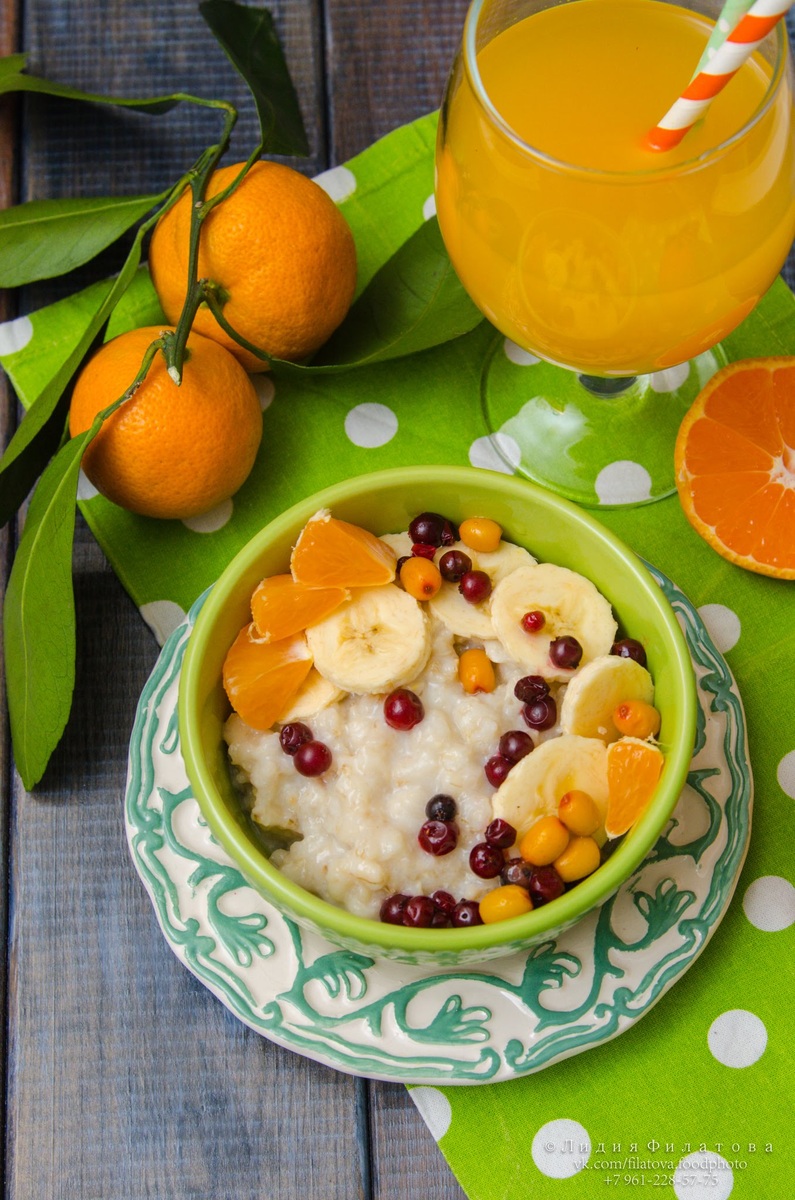 Этот рецепт создает гармонию сладости и кислинки, что делает утренний прием пищи не только полезным, но и восхитительным. Банан добавляет естественную сладость, а клюква и мандарины обогащают кашу витаминами.