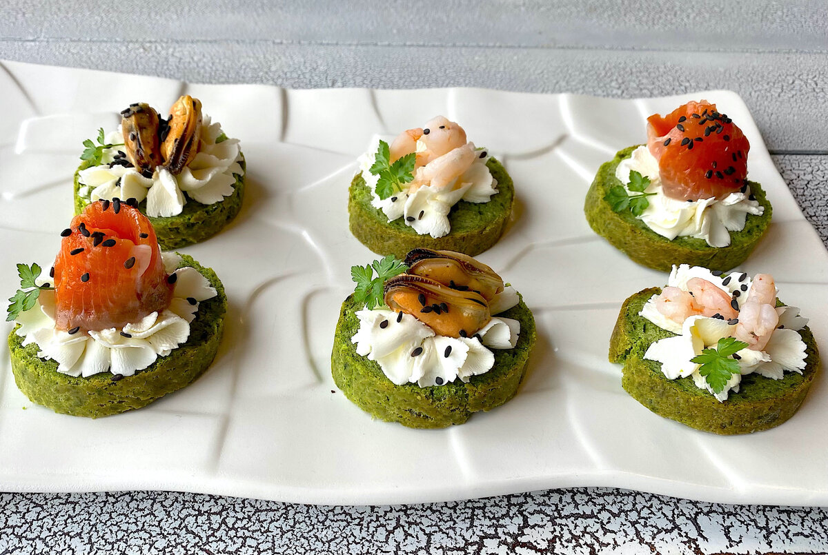 Зеленый багет отличается мягкостью и отсутствием твердой корочки, что делает его идеальным для сервировки закусок. Он не только великолепно выглядит, но и удобно нарезается на тонкие ломтики, идеально подходящие для создания небольших, но аппетитных бутербродов.