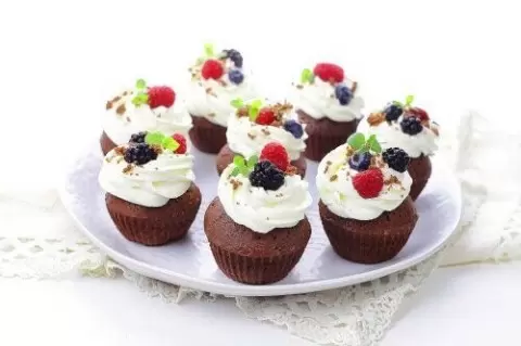 Эти капкейки поражают своим насыщенным шоколадным вкусом. Кремовая шапочка нежна на вкус и не слишком сладкая, а начинка с фруктовым джемом создает идеальную гармонию. Такой десерт станет настоящим украшением любого праздника.