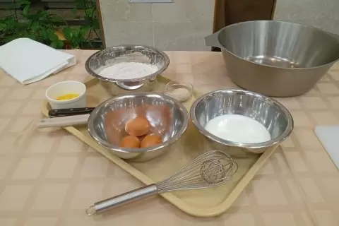- Смешать яйца, йогурт и мед, добавив просеянную муку и соду.