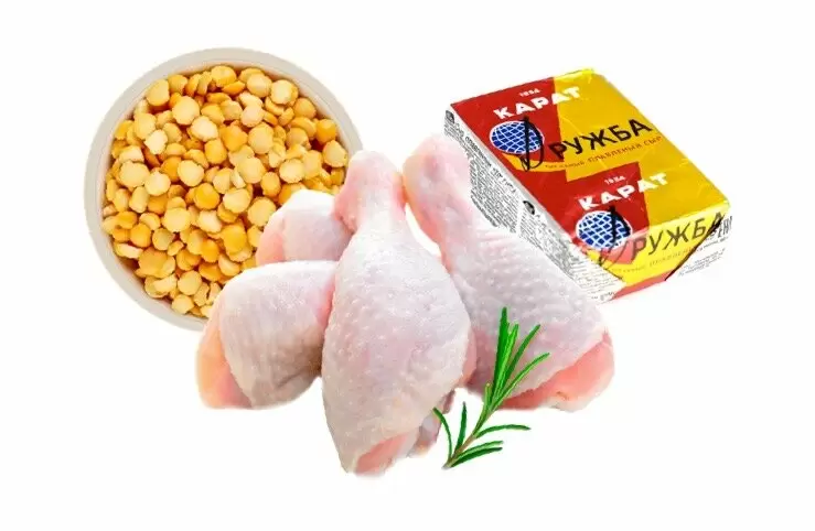 Для этого супа понадобятся: 200 г замоченного лущеного гороха, 300 г куриных окорочков, 300 г картофеля, 100 г лука, 100 г моркови, 60 мл растительного масла и специи по вкусу.