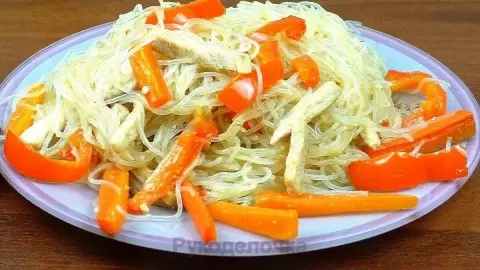 Фунчоза — это идеальное решение для быстрого и вкусного обеда. Ее можно подавать с разными видами мяса, будь то свинина, курятина или говядина. В этом рецепте мясо сочетается с яркими овощами, создавая гармоничное блюдо, которое порадует даже самых искушенных приверед.