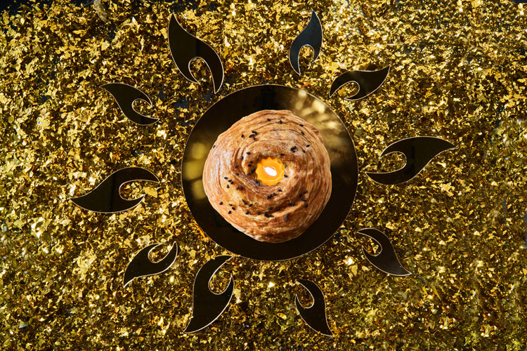 Шекербура — это отражение Луны, сверкающей в холодную мартовскую ночь над горными вершинами. Это печенье с рассыпчатым тестом и тонким узором, который наносят вручную с помощью маггаша, рассказывает о ночном небе и тайнах природы. Внутри находится сладкая ореховая начинка, которая добавляет сладости к этому лунному символу.