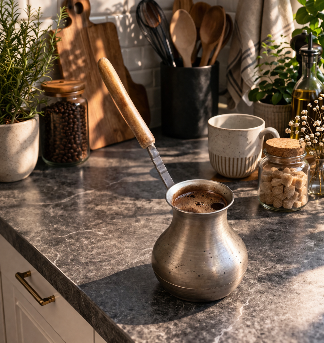 На финальном этапе оставьте турку на минуту, чтобы гуща осела. После этого разлейте по чашкам и наслаждайтесь.