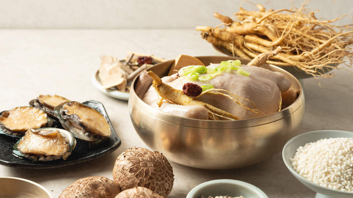 Этот целебный корейский суп долго служил источником энергии во время холодных зим. Самгетан — это не просто еда, а настоящий обряд восстановления сил благодаря женьшеню, который обладает множеством полезных свойств. Внутри целой курицы помещают специальный набор ингредиентов: рис, женьшень и финики, что придаёт бульону невероятную насыщенность.