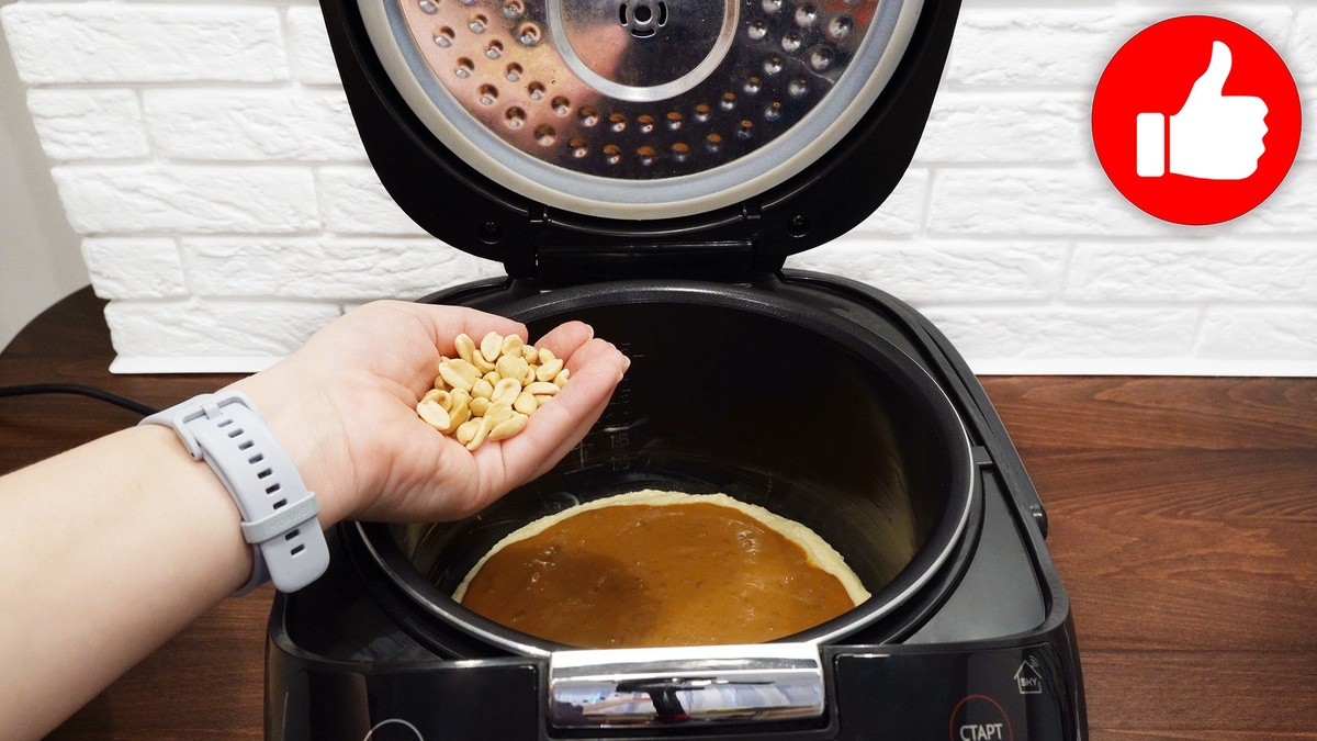 Затем следует подготовить чашу мультиварки, смазав её маслом. Выложите половину теста на дно, сверху щедро посыпьте начинкой и орехами, а затем закройте оставшимся тестом. Установите режим «Выпечка» и ожидайте 45 минут до готовности.