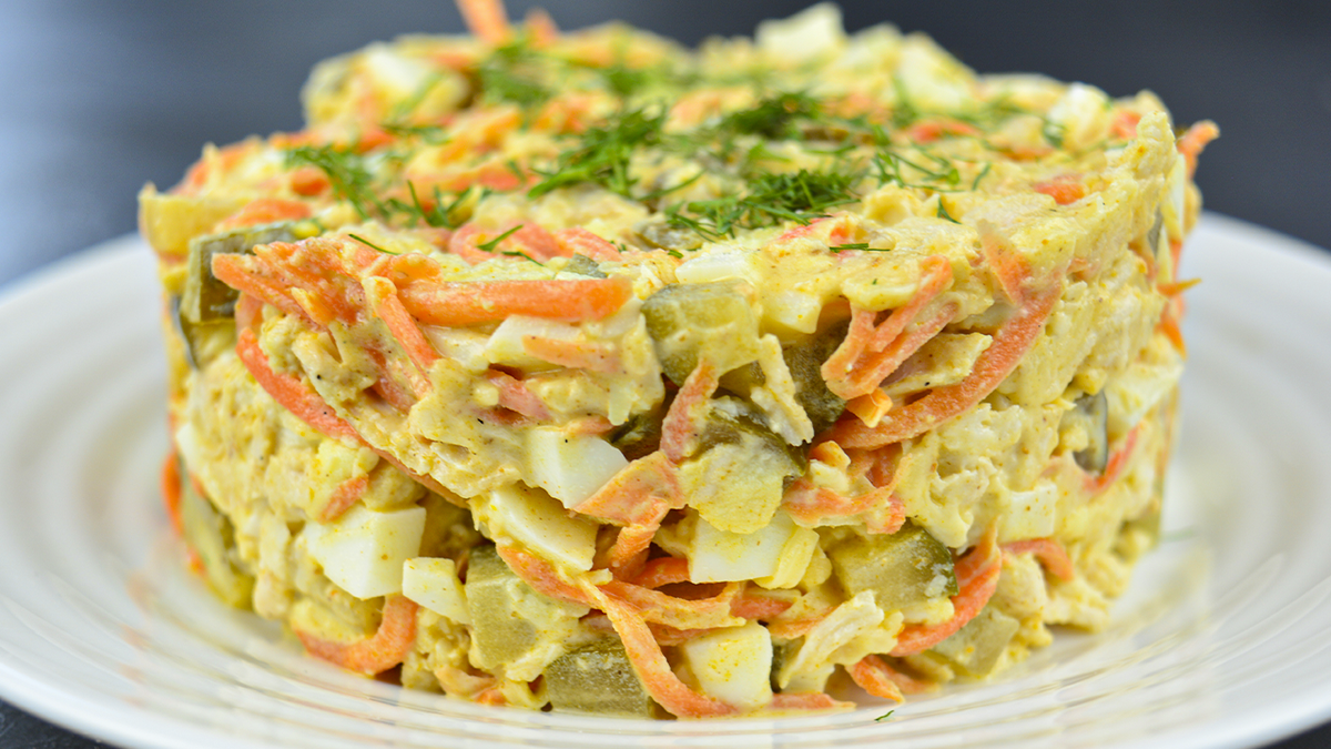 Приготовление этого салата займет совсем немного времени. Важно заранее отварить куриные яйца и филе, приправив мясо по своему вкусу. Для истинного восторга можно использовать оригинальные пряности на свой вкус, сообщает канал.