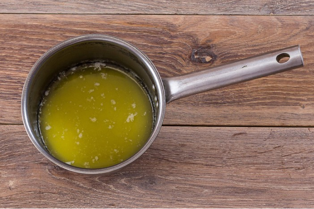 Шаг 1: Разогрейте духовку до 180°C. На маленьком огне растопите сливочное масло в сотейнике.