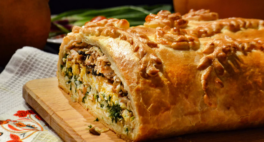 Кулебяка — это истинное сокровище русской кухни, представляющее собой закрытый пирог с многослойной начинкой. Хотя традиционно используется комбинация из трех видов рыбного или мясного фарша, существуют и вегетарианские варианты, например, постная кулебяка, которая восхитит любителей растительной пищи.