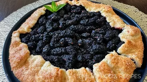 Когда тесто будет готово, его нужно раскатать на пергаментной бумаге, придавая форму круга. Затем на середину теста добавляется немного кукурузного крахмала и ягоды шелковицы, присыпанные сахаром. Края галеты аккуратно загибаются, а сверху ее смазывают молоком и посыпают сахаром для образования хрустящей корочки. Перед выпечкой стоит убрать галету в морозильник на 30 минут.