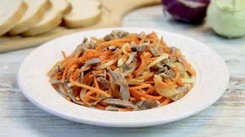 Этот острый салат с корейской морковью обязательно станет вашим новым фаворитом. Его яркий вкус и пикантные нотки сделают любое застолье незабываемым. Приятного аппетита!