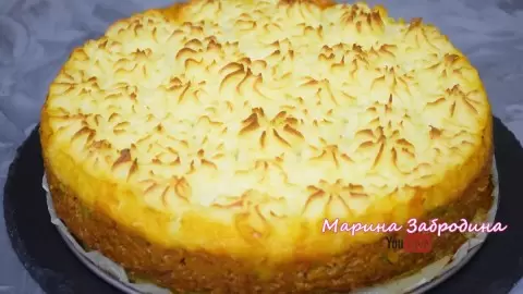 Отварить картофель в подсоленной воде, слить воду и добавить сливочное масло, горячее молоко и сушеный чеснок, хорошо размешивая в однородное пюре. Когда оно будет готово, добавить натертый сыр и перемешать. Переложить мясную начинку в форму для запекания, сверху распределить картофельное пюре, перед тем как отправить все в разогретую до 200 градусов духовку на 30 минут. Пюре должно подрумяниться, а блюдо станет не только ароматным, но и визуально привлекательным.