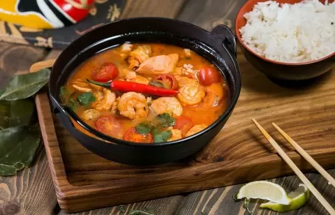 Том ям — это не просто суп, но настоящая кулинарная симфония, полная ярких вкусов и ароматов, способная перенести любого в самую сердцевину Тайланда. Это блюдо, в основе которого лежит острый и кислый бульон, популярно не только на уличных рынках, но и в ресторанчиках по всей стране. Обычно в его состав входят свежие морепродукты, такие как креветки, а также грибы, лемонграсс, листья лайма и острый перец.