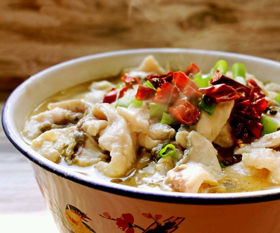 Дальше начинается процесс обжаривания: в сковороде на растительном масле спорится чеснок с имбирем, затем добавляются кусочки хребта и капуста. С этой основы заливают водой и варят 15-20 минут. После этого на густой бульон выкладываются маринованные кусочки рыбы, которые нужно варить до тех пор, пока они не побелеют. Готовую рыбу добавляют на заранее подготовленное блюдо и поливают бульоном. В завершение посыпают сверху перцем чили и подрумянивают блюдо с помощью горячего масла.