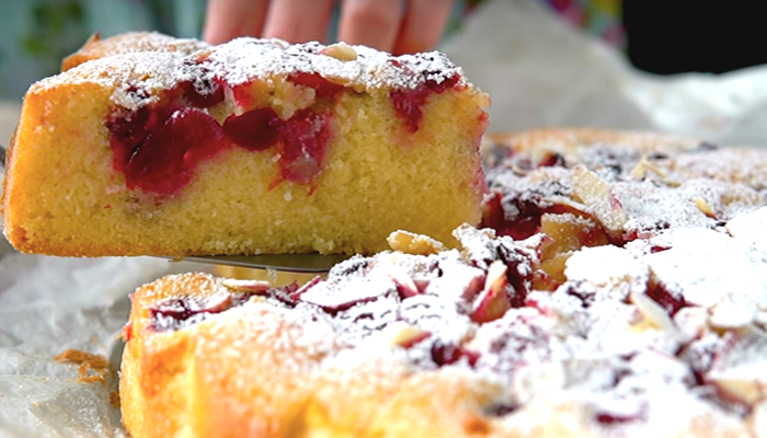 Теперь пирог отправляется в разогретую духовку на 30–35 минут. Готовность проверяется с помощью деревянной шпажки: если она выходит сухой, значит, все готово! После этого пирог стоит немного остудить и подать к чаю. Этот легкий и нежный бисквит с кислинкой вишни непременно станет звездой любого стола.