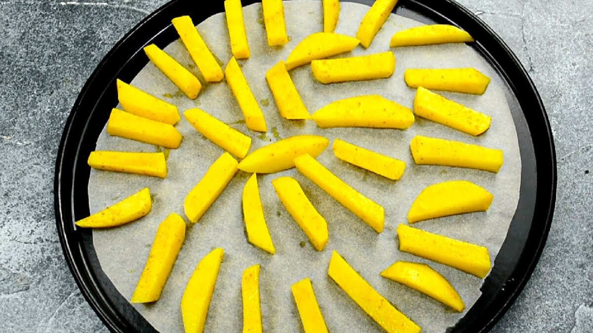 Завершенный картофель фри будет выглядеть так аппетитно благодаря куркуме, которая придаёт ему особый цвет и эффектный вид. Это блюдо по вкусу ничем не уступает ресторанным, хотя его приготовление занимает минимум времени!